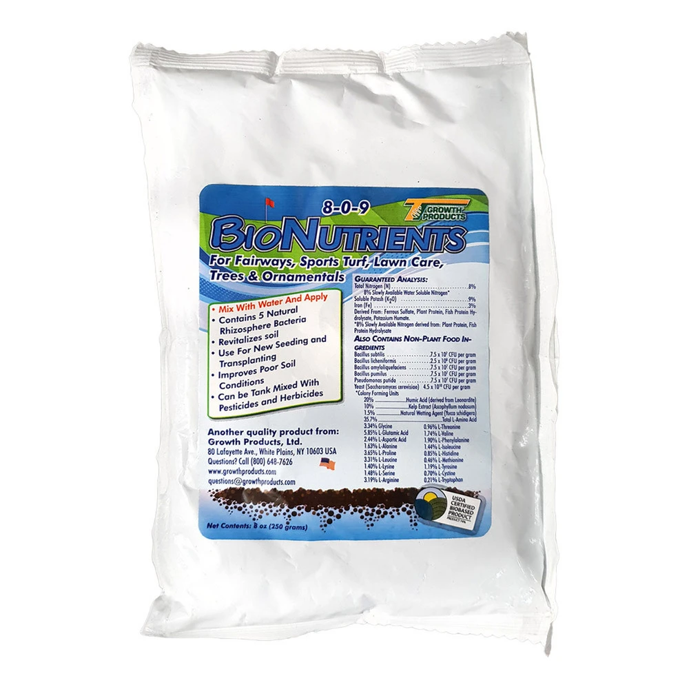 BioNutrients is a unique, dry, 100% soluble blend of humic acid, natural wetting agent, kelp, natural L-amino acids and our exclusive combination of beneficial soil bacteria along with fortified natural carriers that add rich organic material to soils. It has the added advantage of containing a natural biostiumulant to promote strong rooting. BioNutrients can be used on all fairway grasses, sports turf, lawn care, tree and ornamental applications.