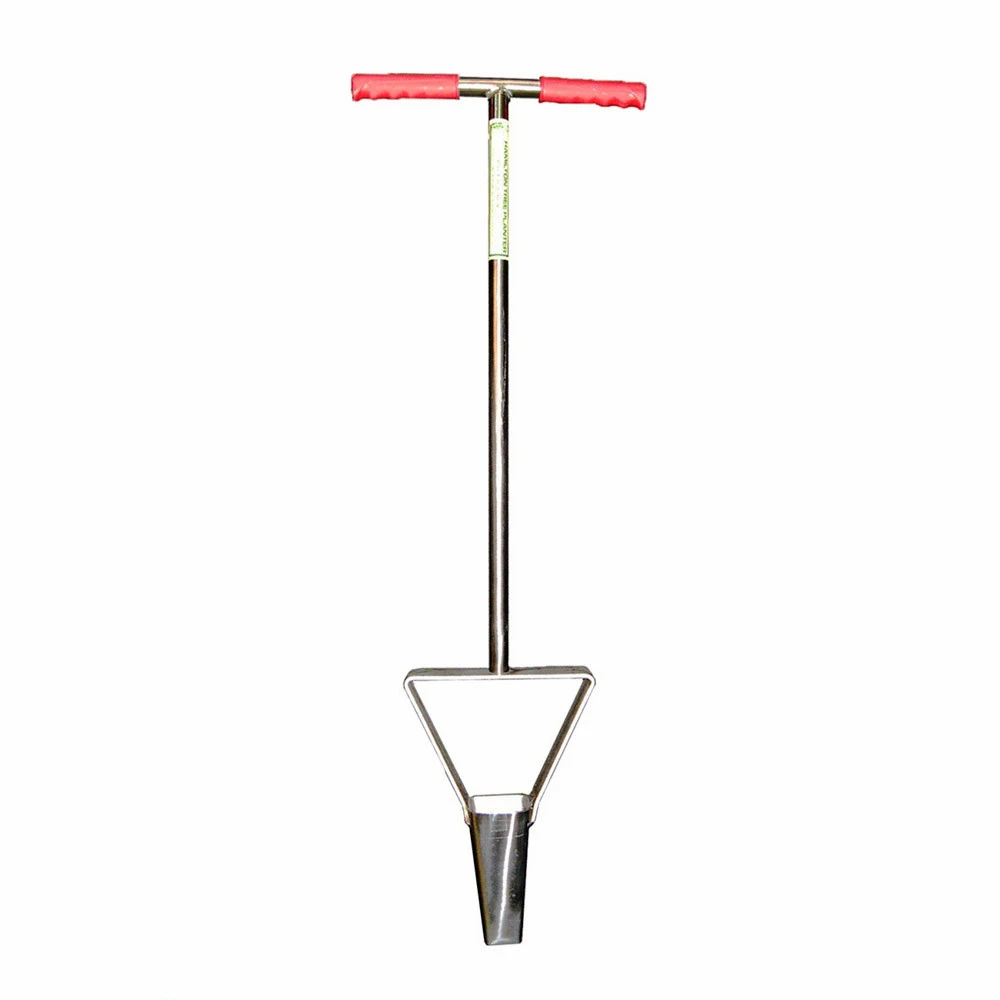 Effortless to use, the planter is driven into the soil using the hand grips and footsteps for leverage. For firm grounds, a more forceful method may be applied. Its unique design ensures easy removal from the soil without disturbing the planting hole’s shape, readying it for the next use without soil adhesion issues.